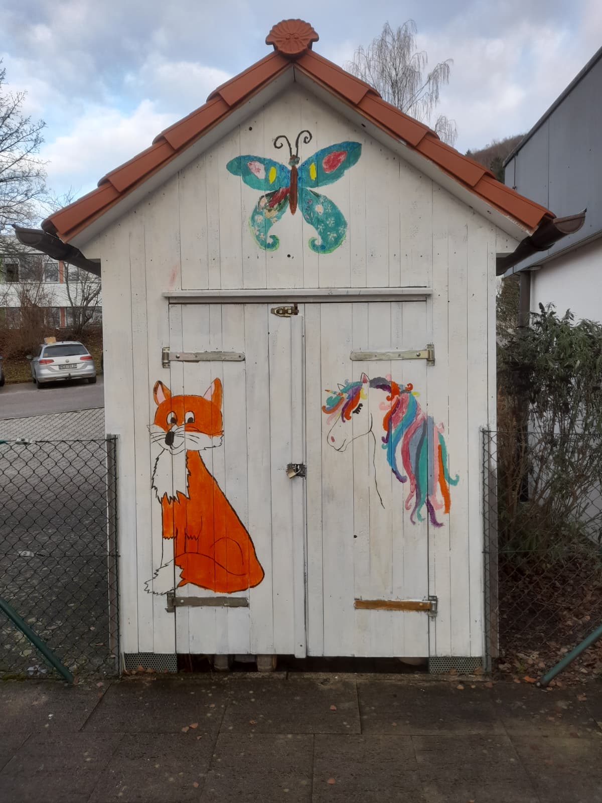 Für mehr Stauraum wurde ein neues Gerätehäuschen für den Kitagarten besorgt. Wir als Förderverein haben dazu noch die Farbe spendiert, damit die Kinder das Häuschen nach ihren Vorstellungen bemahlen und verzieren konnten.